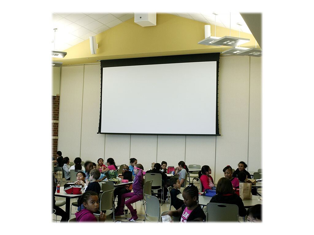 This recessed projection screen is packed full of great features and will work perfect for just. 120 ceiling recessed motorized projector screen white 16:9 projection w/ remote. Ceiling recessed tensioned plug and play electric screens. The screen's black top drop is already set to its maximum drop distance. This sits flush to the ceiling so all projection screen box lives permanently inside the ceiling.